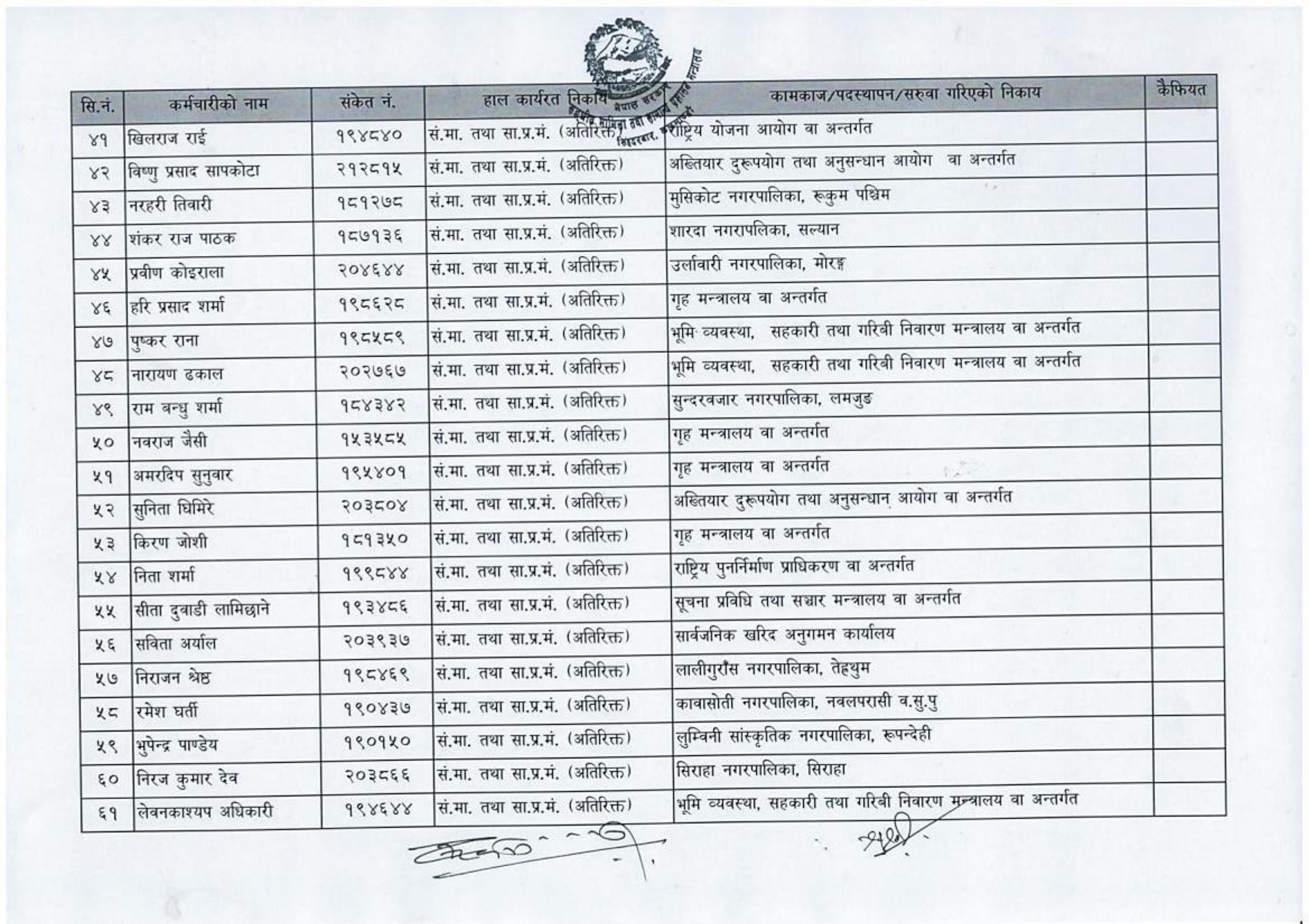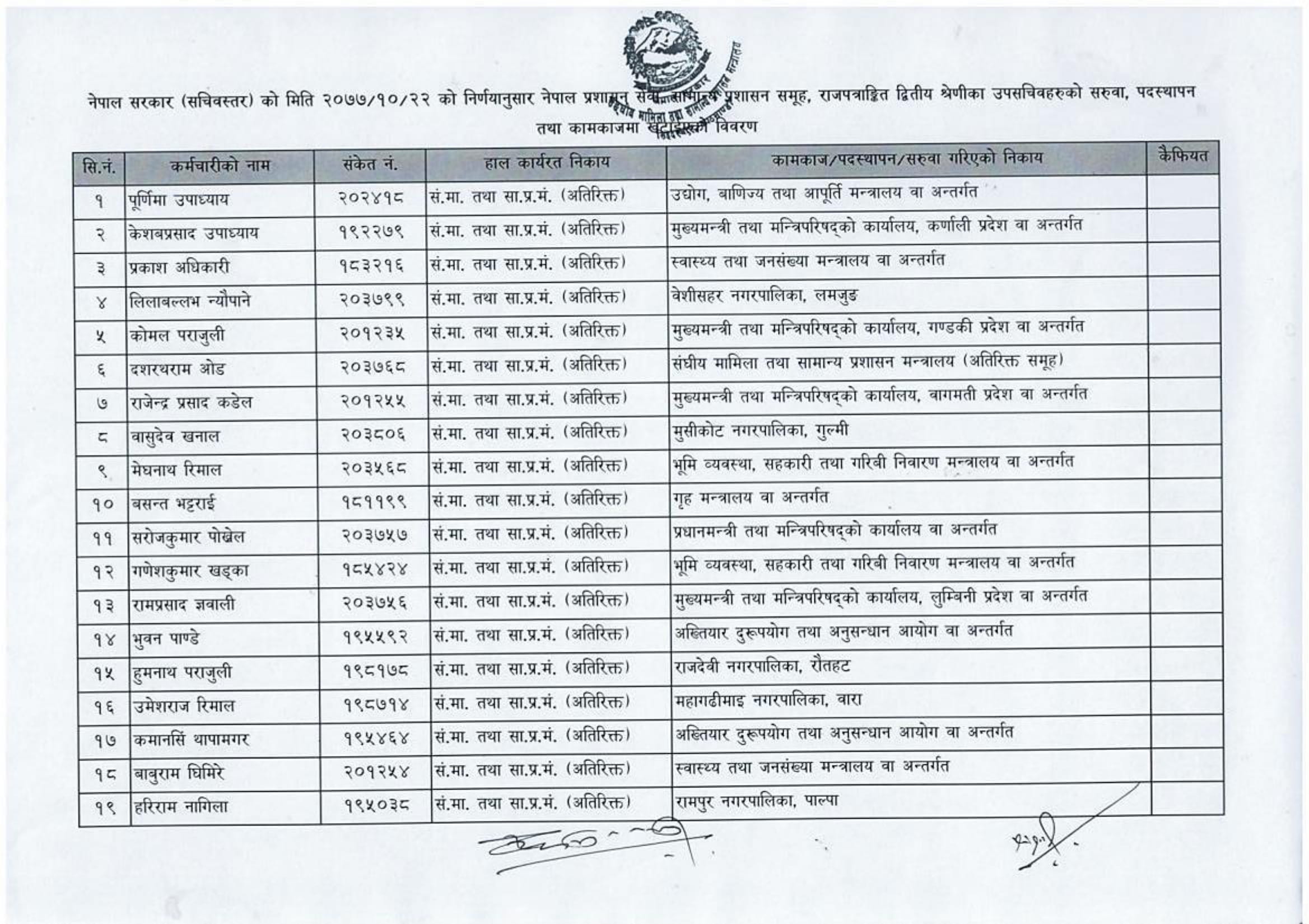 मन्त्रालयले सङ्घ, प्रदेश र स्थानीय तहका विभिन्न कार्यालयहरूमा पठाएको हो । सबैभन्दा बढी २२ उपसचिव स्थानीय तहमा पठाइएको छ।