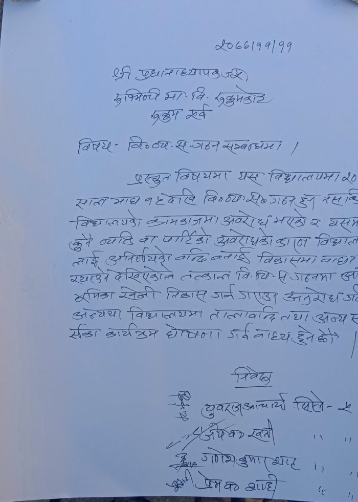 रूकुमकाेट । पूर्वी रूकुमकाे रुक्मिणी माध्यामिक विद्यालका अभिभावकहरू आन्दाेलित भएका छन् ।