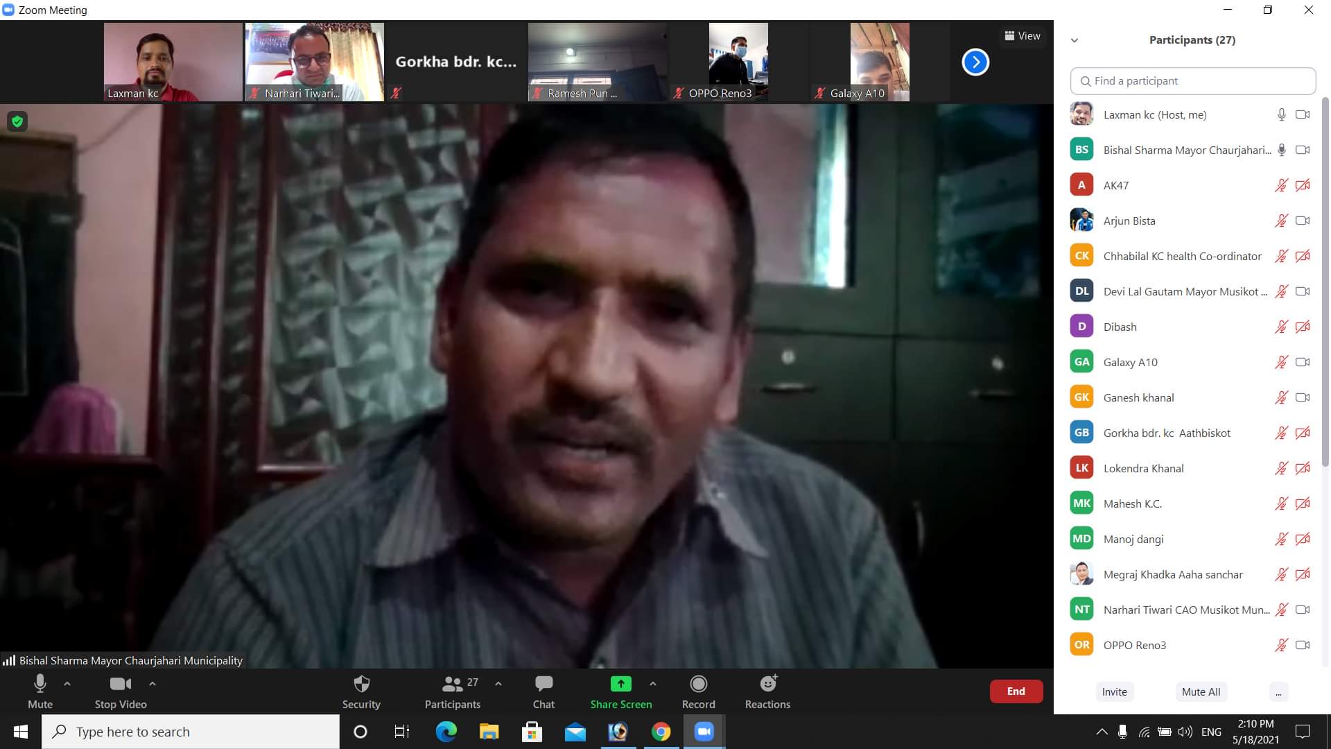 मंगलबार पत्रकार महासंघ रुकुमले आयोजना गरेको कोरोना भाइरस संक्रमणको रोकथाम, नियन्त्रण तथा उपचारमा रुकुम पश्चिमका स्थानीय तहहरुले खेलेको भुमिका र चुनौती बिषयक अन्तरक्रिया कार्यक्रममा चौरजहारी नगरपालिका प्रमुख बिशाल शर्माले पालिकाले गरेका केहि गतिबिधिहरुको जानकारी गराउँनुहुदै नगरपालिकाले ३ ठाउँमा १५/१५ बेडका आइसोलेसन बनाएको बताउँनुभयो ।