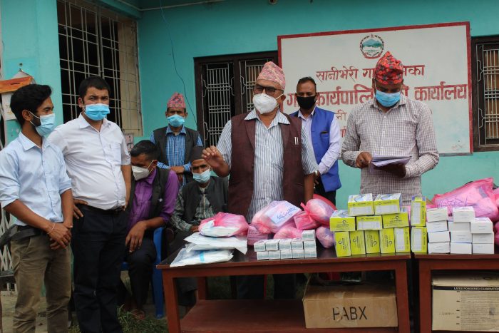 सानीभेरी गाउँपालिका कार्यालय मातहतका बिषयगत शाखा, अस्पताल, ११ वटै वडाका स्वास्थ्य चौकी, प्रहरी चौकी र स्थानीय रेडियोलाई स्वास्थ्य सुरक्षाका सामाग्रीहरु बितरण गरिएको नेपाली काँग्रेस रुकुम पश्चिमका महाधिबेशन प्रतिनिधि गोरख प्रसाद चन्दले जानकारी दिनुभयो ।