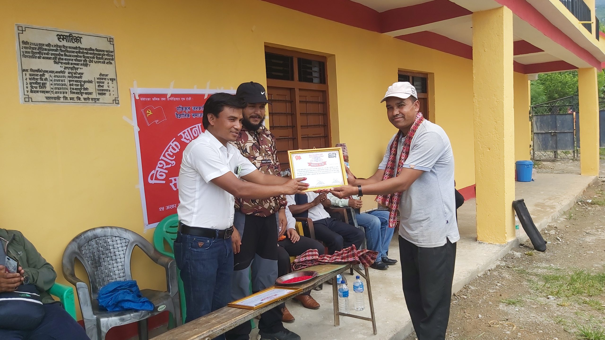अभियानमा महत्वपूर्ण सहयोग गर्नुहुने सरस्वती मावि सल्लेका प्रधानाध्यापक खम्बुसिं थापा, मुसिकोट नगरपालिका वडा नम्वर १ का वडा अध्यक्ष बिरवल केसी, स्वास्थ्य सेवा कार्यालय रुकुम पश्चिमका निमित्त स्वास्थ्य सेवा व्यबस्थापक बिष्णु बुढाथोकि पनि सम्मानित हुनुभएको छ । त्यसैगरी सोहि कार्यक्रममा विमानस्थल सुरक्षा गार्ड सल्लेका प्रहरी नायब निरिक्षक शेरबहादुर चन्द, साझा मुराल अस्पतालका डा. दिपक पुन र स्थानीय समाजसेवी नन्दकली दमाई सम्मानित हुनुभएको छ ।