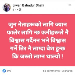 ‘वेटिङ’ मुख्यमन्त्री जीवन शाहीको धम्कीपूर्ण स्टाटस, आफ्नै नेतृत्वप्रति असन्तुष्टि