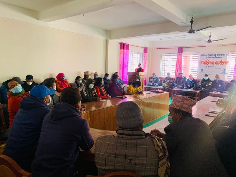 नेपाल पत्रकार महासंघ रुकुमले मंगलबार जिल्ला सदरमुकाम खलङ्गामा कोभिड –१९ रोकथाम तथा नियन्त्रणका लागि सरोकारवाला निकायसँग आयोजना गरेको अन्तरक्रिया कार्यक्रममा सहभागि जिल्लाका सरोकारवाला निकायहरूले कोभिडको तेस्रो भेरियण्ट सँग जुध्न आवश्यक तयारीको बारेमा छलफल गरेका हुन् ।