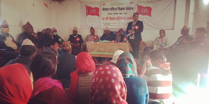 नेपाल राष्ट्रिय शिक्षक संगठन जिल्ला समितिका निवर्तमान अध्यक्ष घनश्याम दाहालको अध्यक्षतामा भएको कार्यक्रममा नेपाल शिक्षक महासंघका केन्द्रिय सदस्य संगम केसीको प्रमुख तथा र नेकपा एमालेका पोलिटब्युरो सदस्य खेममान खड्काको विशेष आतिथ्यता रहेको थियो ।