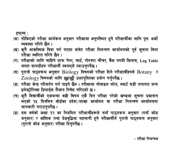 बोर्डले यस वर्ष पनि कक्षा १२ को प्रश्नपत्र भने अनलाइनबाट नै पठाउने तयारी गरेको छ । कोभिड १९ को कारण बोर्डले गत वर्षदेखि प्रश्नपत्र प्रकाशन गर्न छोडेको हो । गत वर्ष अनलाइनबाट प्रश्नपत्र पठाउँदा भएको समस्या सुधार्दै प्रश्न पत्र पठाउने तयारी गरेको बोर्डले जनाएको छ ।
