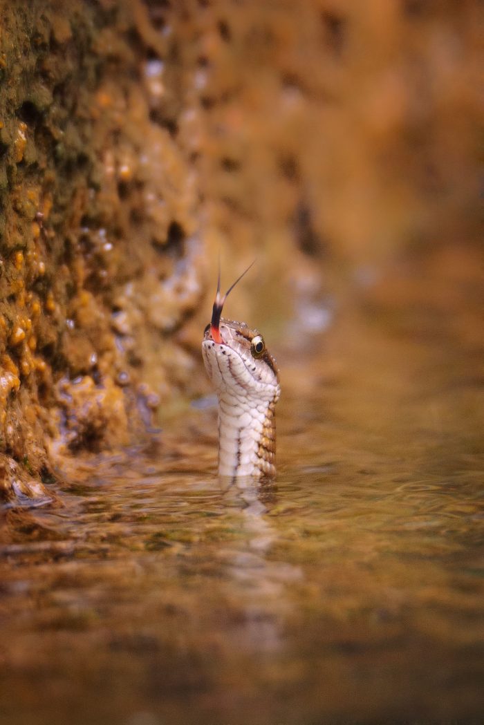 पोहोर सालको कुरा हो । २३ वर्षीय वाइल्डलाइफ फोटोग्राफर विनय रावल साथीभाइसँग पौडी खेल्न गाउँको एक स्थानीय पोखरी गएका थिए । रुकुमको सल्यगाउँको सो पोखरीमा उनीहरू गर्मीमा सधैँ पौडी खेल्ने गर्थे । तर, त्यस दिन नुहाउन जाँदा पोखरीमा एउटा अनौठो सर्प टाउको निकालेर घाम तापिरहेको उनीहरूले देखे ।