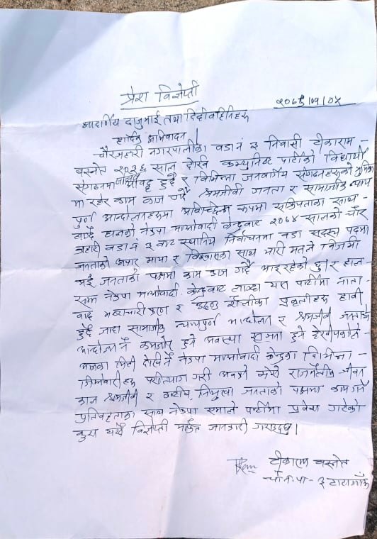 यस्तै नवप्रबेशि बस्नेतले एक विज्ञप्ति जारी गर्दै वडा सदस्य बस्नेतले माओवादीमा चरम अवसरवाद हावी भएको, भ्रष्टाचार र उदण्डता मौलाएको र नातावाद कृपावादका कारण श्रमजीवी आन्दोलन कमजोर हुदै गएको कारण आफुले माओवादी केन्द्र परित्याग गरेर एमाले प्रवेश गरेको बताउनु भएको छ ।