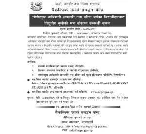 विद्यार्थीलाई नि:शुल्क विद्युतीय चुल्हो वितरण गर्न वैकल्पिक ऊर्जा प्रबर्धन केन्द्रले निवेदन आह्वान गरेको छ ।