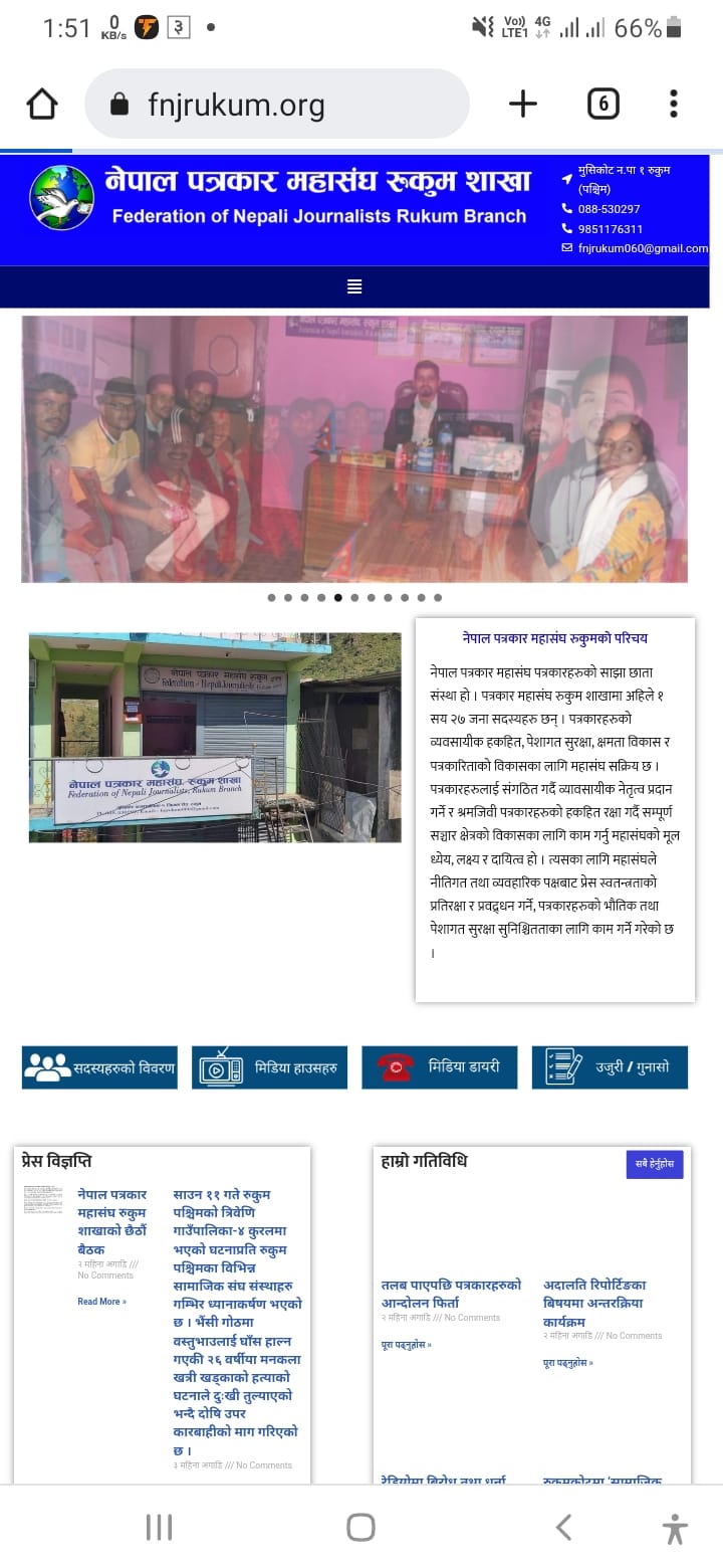 मुसिकोट । नेपाल पत्रकार महासंघ रुकुम शाखाले आफ्नो वेभसाईट शुभारम्भ गरेको छ । बढ्दो प्रविधिको प्रयोगसंगै महासंघले डिजिटल सूचना प्रणालीलाई ध्यानमा राख्दै वेवसाइट संचालनमा ल्याएको हो ।