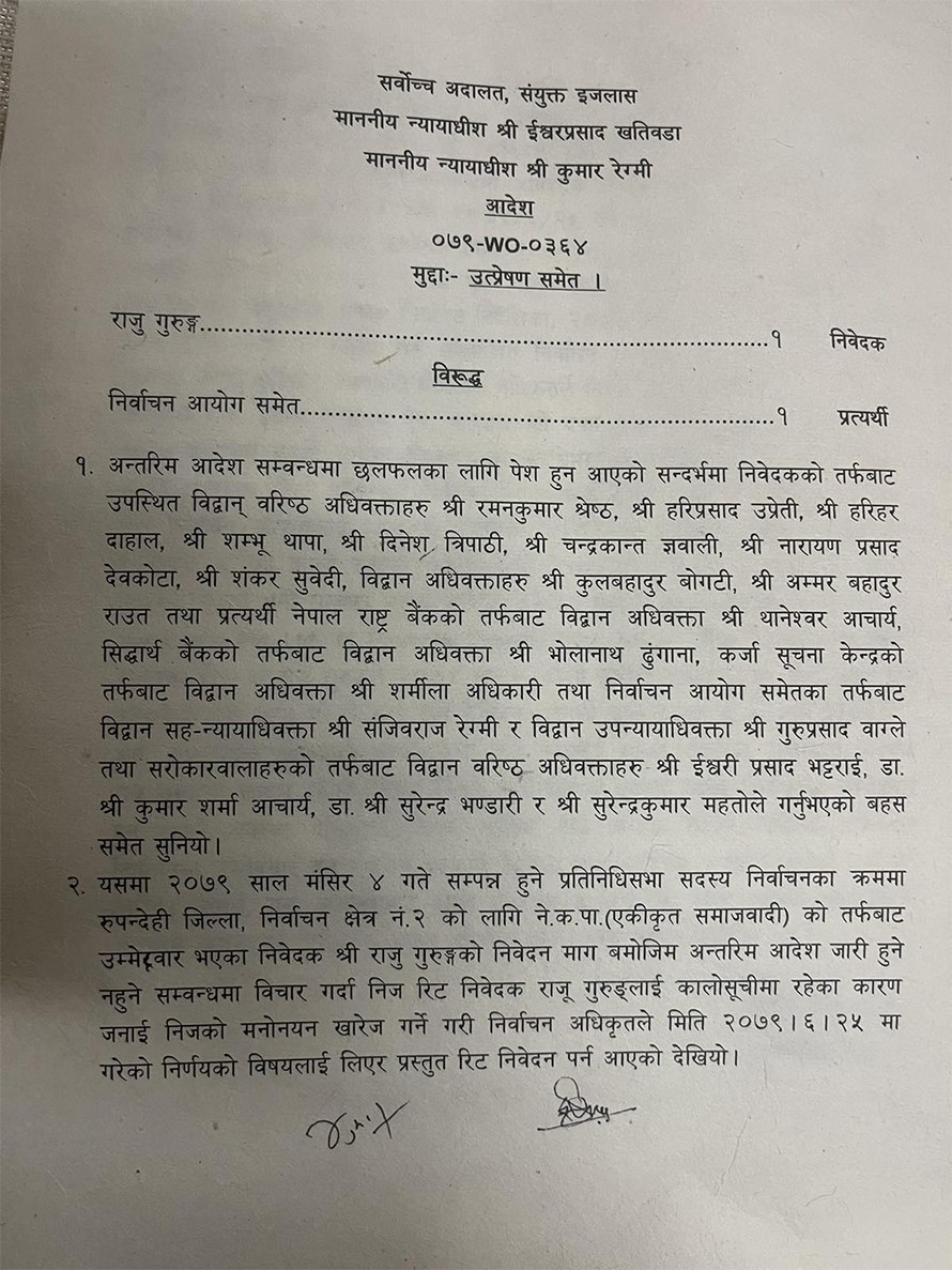 गुरूङले दिएको रिटमा न्यायाधीश ईश्वर खतिवडा र कुमार रेग्मीको इजलासले शुक्रबार अन्तरिम आदेश नहुने भनेको हो।