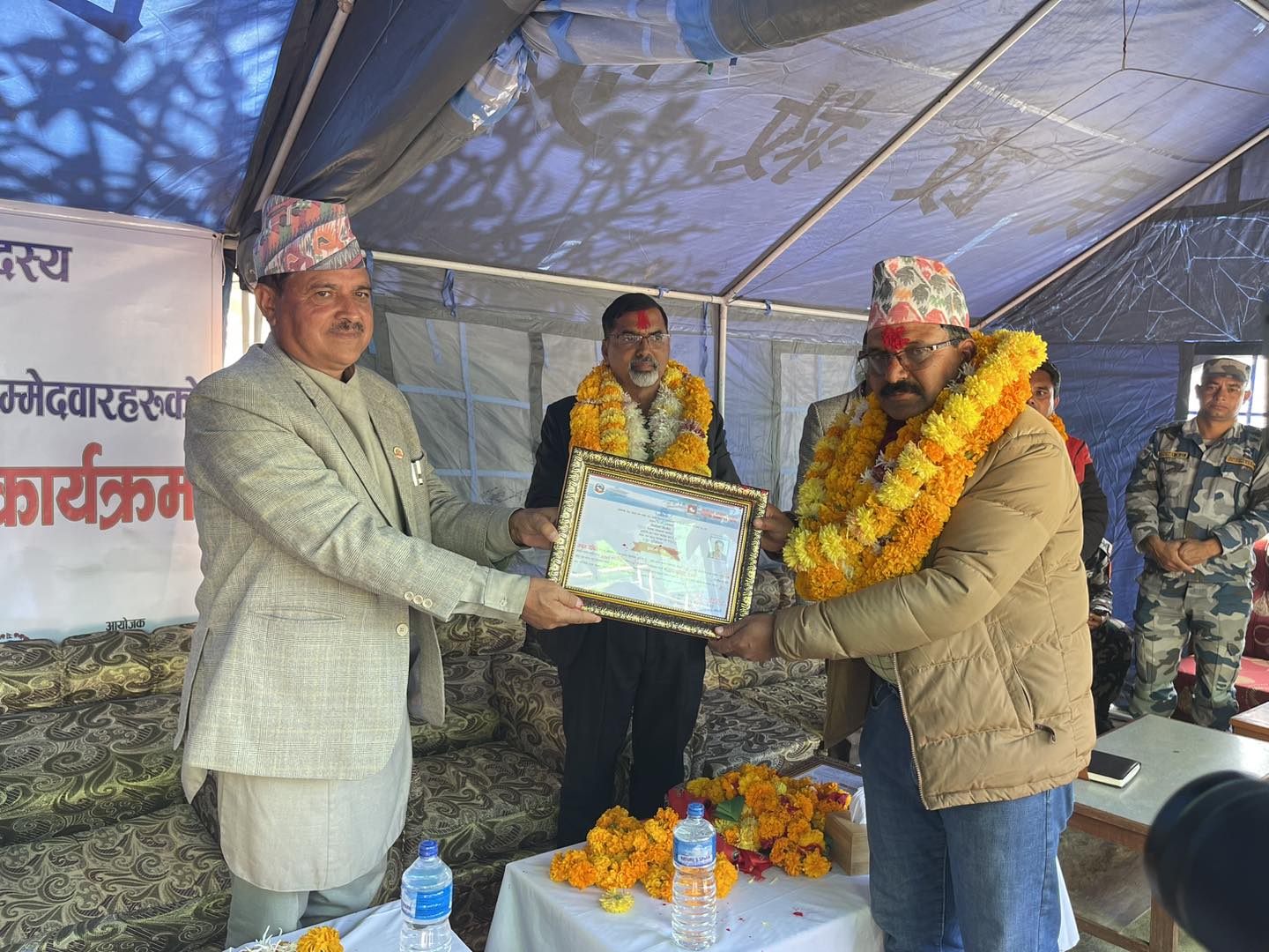 मुख्य निर्वाचन अधिकृत खड्कबहादुर केसीले प्रमाण–पत्र प्रदान गर्नुभएको हो ।