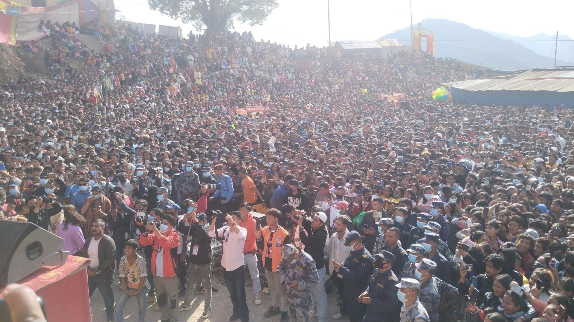 रुकुमपश्चिममा जारी ‘रुकुम कृषि, पर्यटन, व्यापार तथा साँस्कृतिक महोत्सव’को छैटौ दिनको मुख्य आकर्षकका रुपमा पुगेका शाहलाई हेर्न फ्यान एवं दर्शकहरुको बाक्लो उपस्थिति थियो । रुकुम उनको गृह जिल्ला दाङको छिमेकी जिल्ला पर्छ ।
