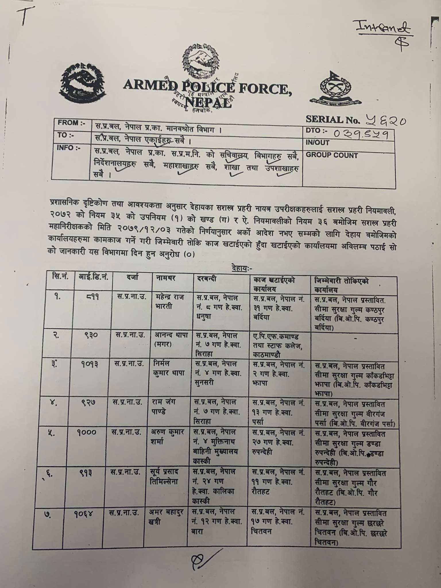 सशस्त्र प्रहरीका ५० डीएसपीको सरुवा (सूचीसहित)