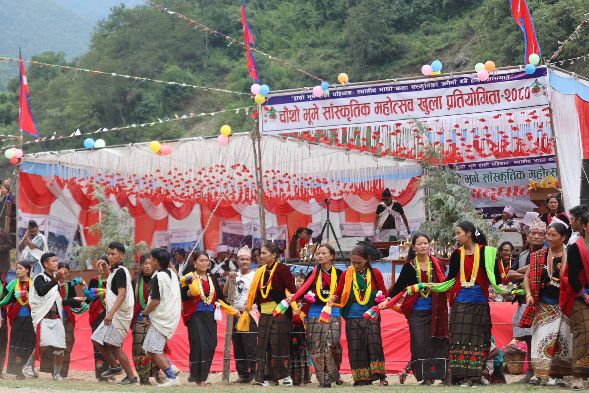 रुकुमकोट । रुकुम पूर्वको भूमे गाउँपालिकामा चौथो भूमे साँस्कृतिक महोत्सब सुरु भएको छ । भूम्या पर्वका अवसरमा “हाम्रो भूमे हाम्रो पहिचान, स्थानीय भाषा कला संस्कृतीलाई जगेर्ना गर्ने हाम्रो अभियान” भन्ने मुल नाराकासाथ शनिबार गाउँपालिकको खाबाङमा एक कार्यक्रमका बिच महोत्सव उद्धघाटन गरिएको हो । महोत्सवको जिल्ला समन्वय समितिका प्रमुख मेघबहादुर श्रेष्ठले उद्धघाटन गर्नुभएको छ ।