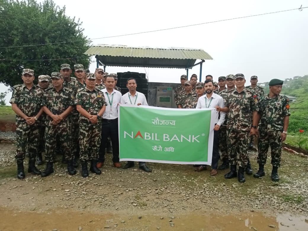 मुसिकोट । नबिल बैंक लिमिटेड मुसिकोट शाखाले नेपाली सेनाको श्री चण्डिदल गणमा पानी शुद्धिकरण यन्त्र उपलब्ध गराएको छ । शुक्रबार नेपाली सेनाको चण्डिदल गणलाई बैंकले पानी शुद्धिकरण यन्त्र उपलब्ध गराएको हो ।
