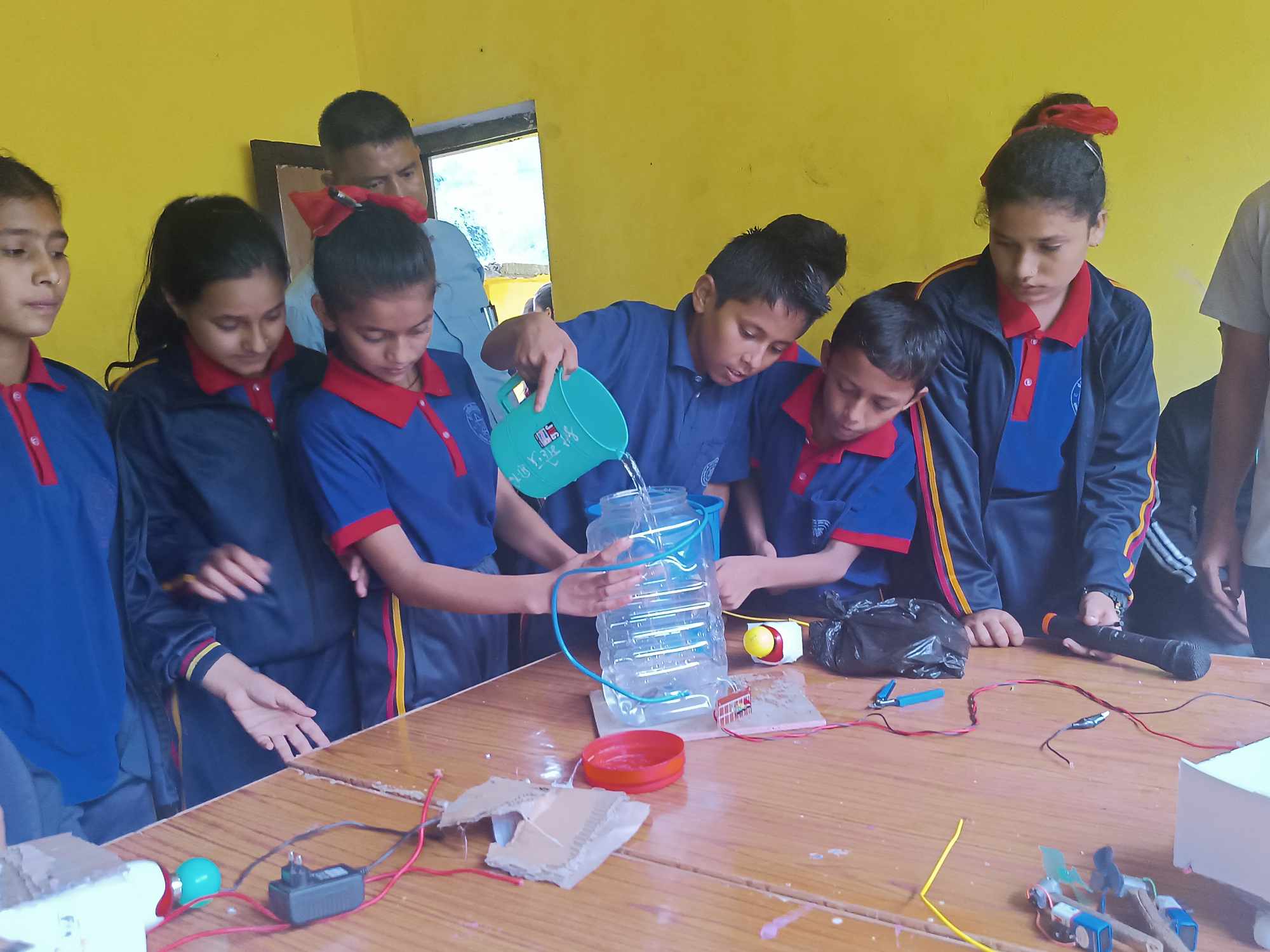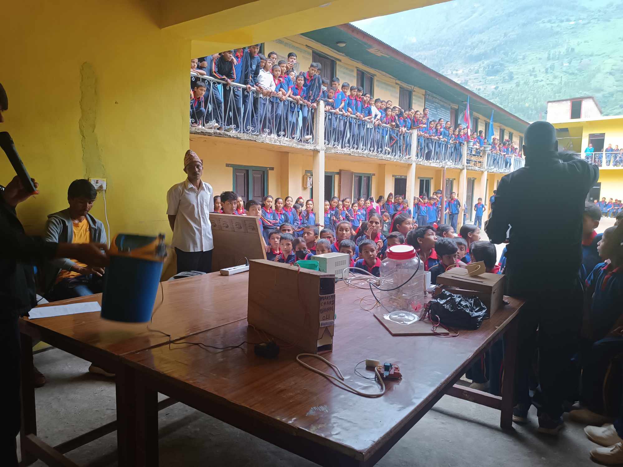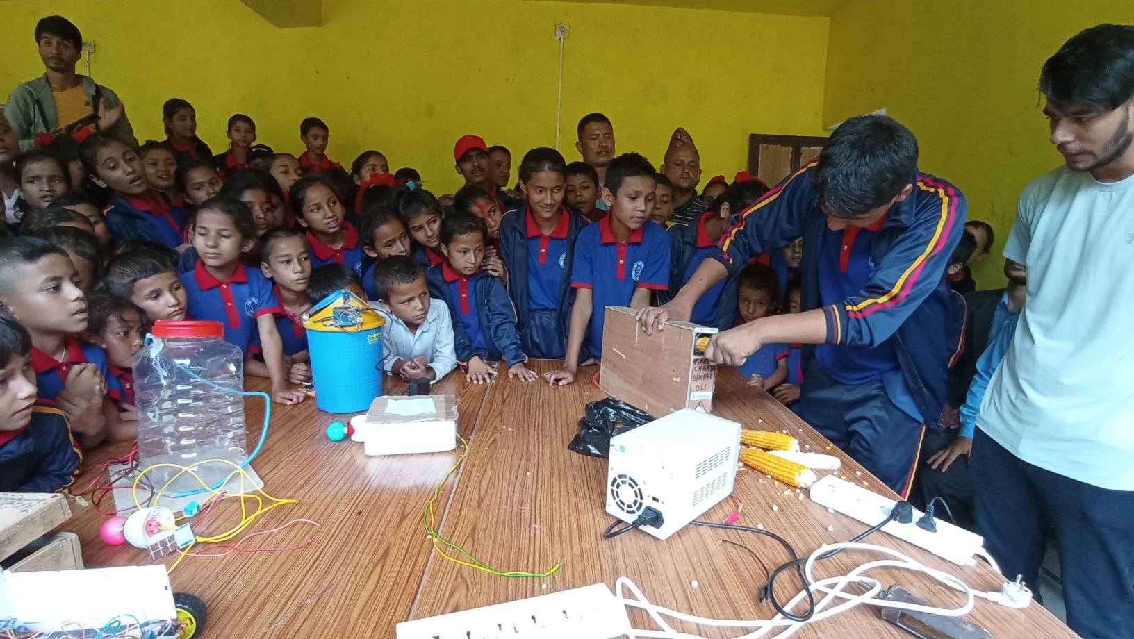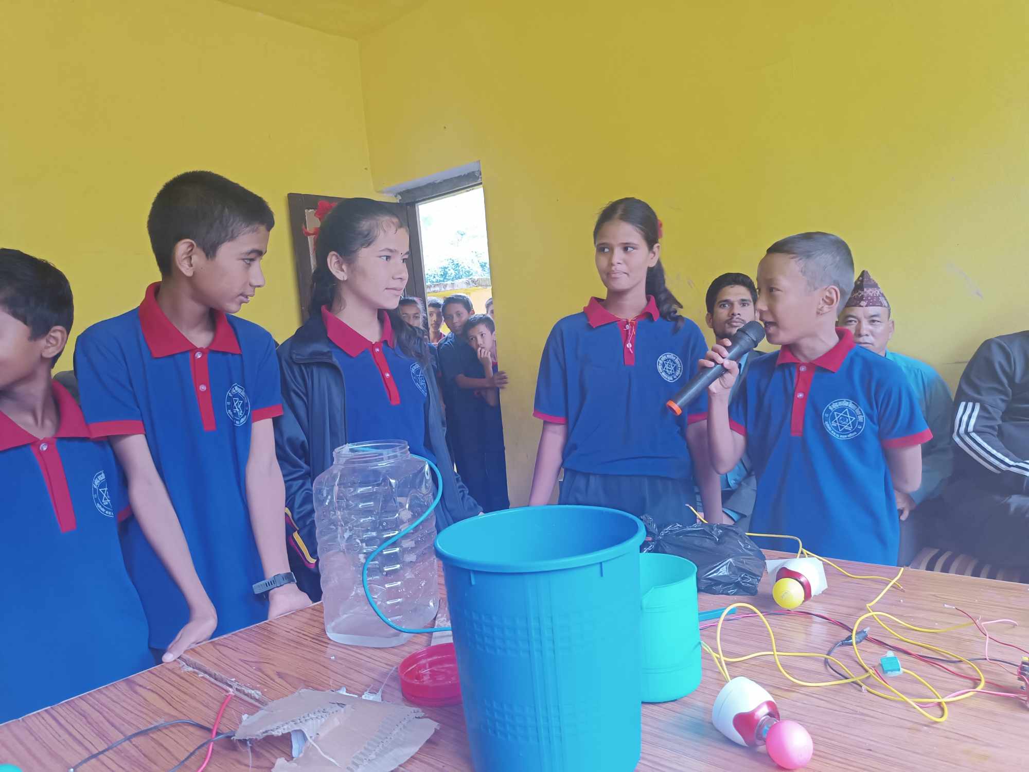 मंगलबार विद्यालय परिसरमा विद्यालयमा अध्ययनरत ५० जना विद्यार्थीले ७ दिन लगाएर तयार गरेको विज्ञान र प्रविधिसँग जोडिएका सामाग्रीहरु अवलोकनका लागि राखिएको थियो ।