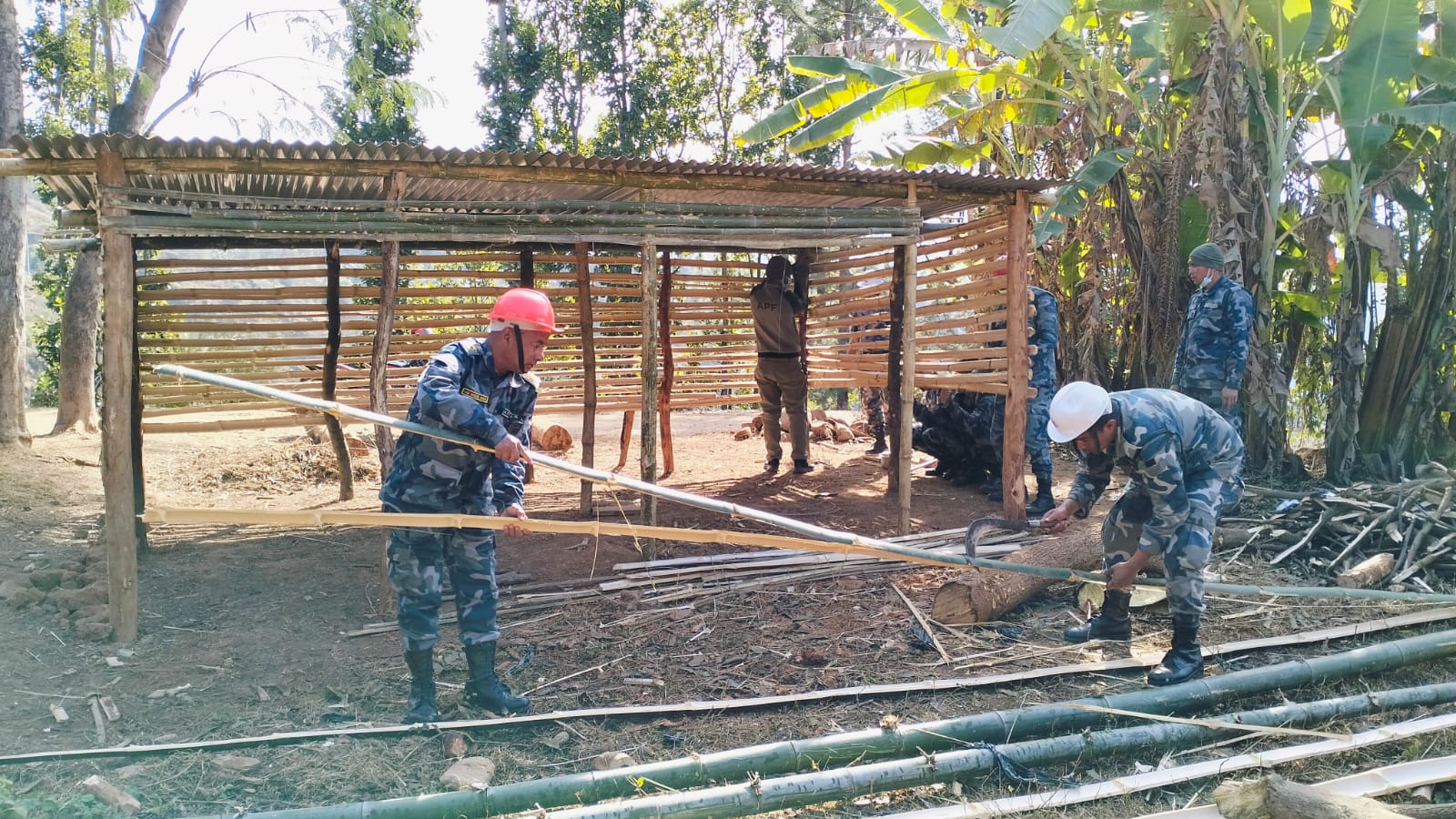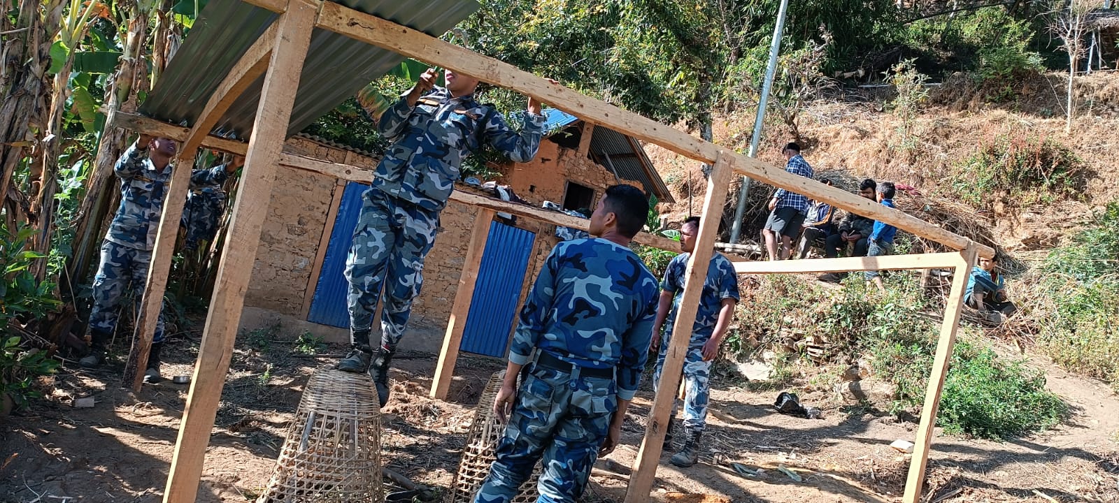 अस्थायी आवास निर्माणका लागि जिल्लाभर ३५ जना सशस्त्र प्रहरीको टोली परिचालन गरिएको छ।