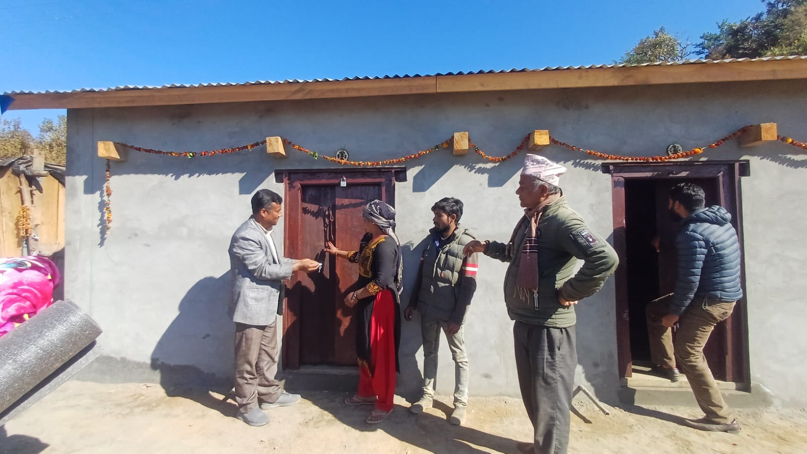 स्थानीय काली बहादुर कामी, कमल बिक र शशिराम बोहराको परिवारलाई नगर प्रमुख बादीले घरको चाबि हस्तान्तरणसँगै न्यानो कपडा समेत उपलब्ध गराउनु भएको हो । कार्यक्रममा नगर प्रमुख बादीले नेकपा (माओवादी केन्द्र) का केन्द्रिय सदस्य समेत रहनुभएका पूर्व नगर प्रमुख बिशाल शर्माको नेतृत्वमा पार्टीले नमूना घर निर्माण गरेर उदाहरणिय कार्य गरेको बताउनुभयो ।