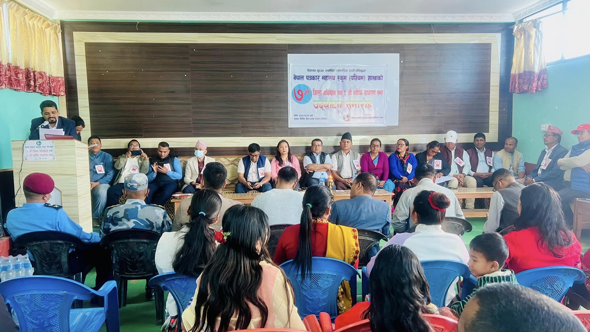 मुसिकोट । नेपाल पत्रकार महासंघ रुकुम पश्चिम शाखाको सातौ जिल्ला अधिवेशन तथा आठौ बार्षिक साधारण सभा सम्पन्न भएको छ । शुक्रबार मुसिकोट नगरपालिका –१ खलंगामा विभिन्न पाँच बुँदे रुकुम घोषणा पत्र जारी गर्दै अधिवेशन तथा साधारण सभा सम्पन्न भएको हो ।