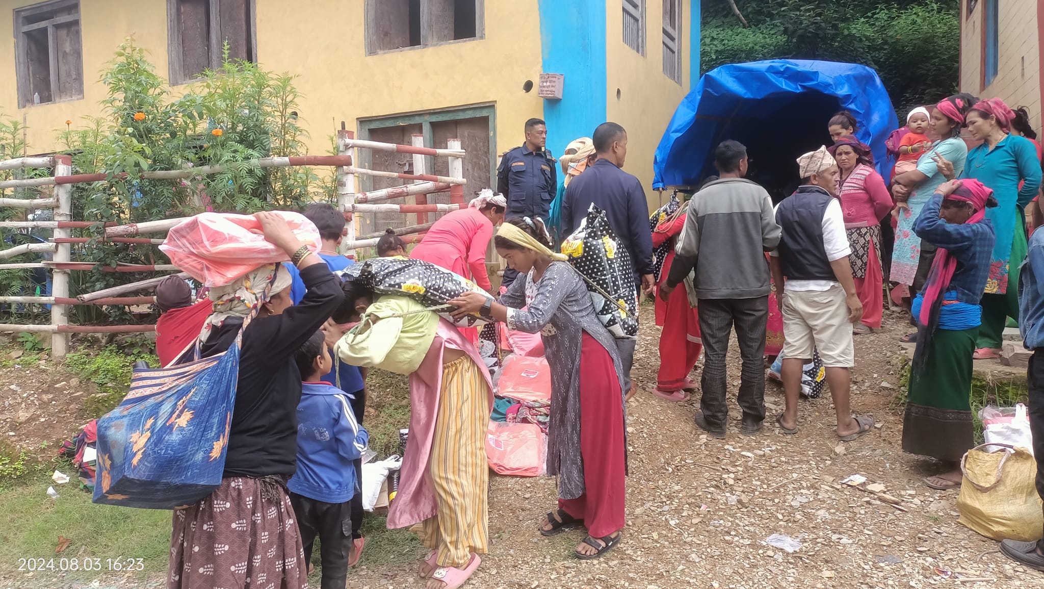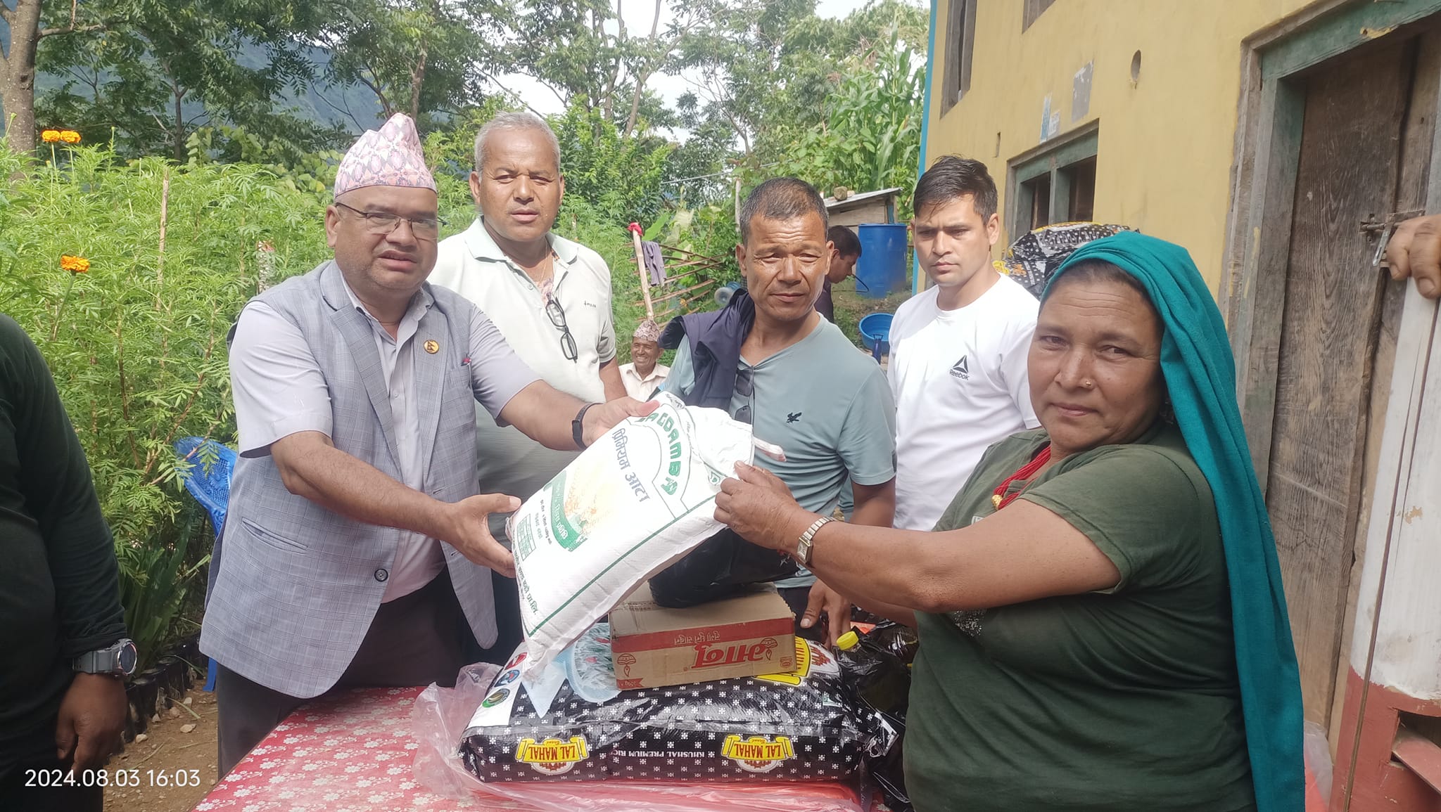 केहि परिवार आफन्तको घरमा आश्रय लिएर बसिरहेका छन् भने केहि परिवार जोखिमपूर्ण घरमै बसिरहेका छन् । प्रभावित परिवारहरुलाई त्रिपाल, दाल, चामल, मैदा, तेल, साबुन उपलब्ध गराईएको हो ।