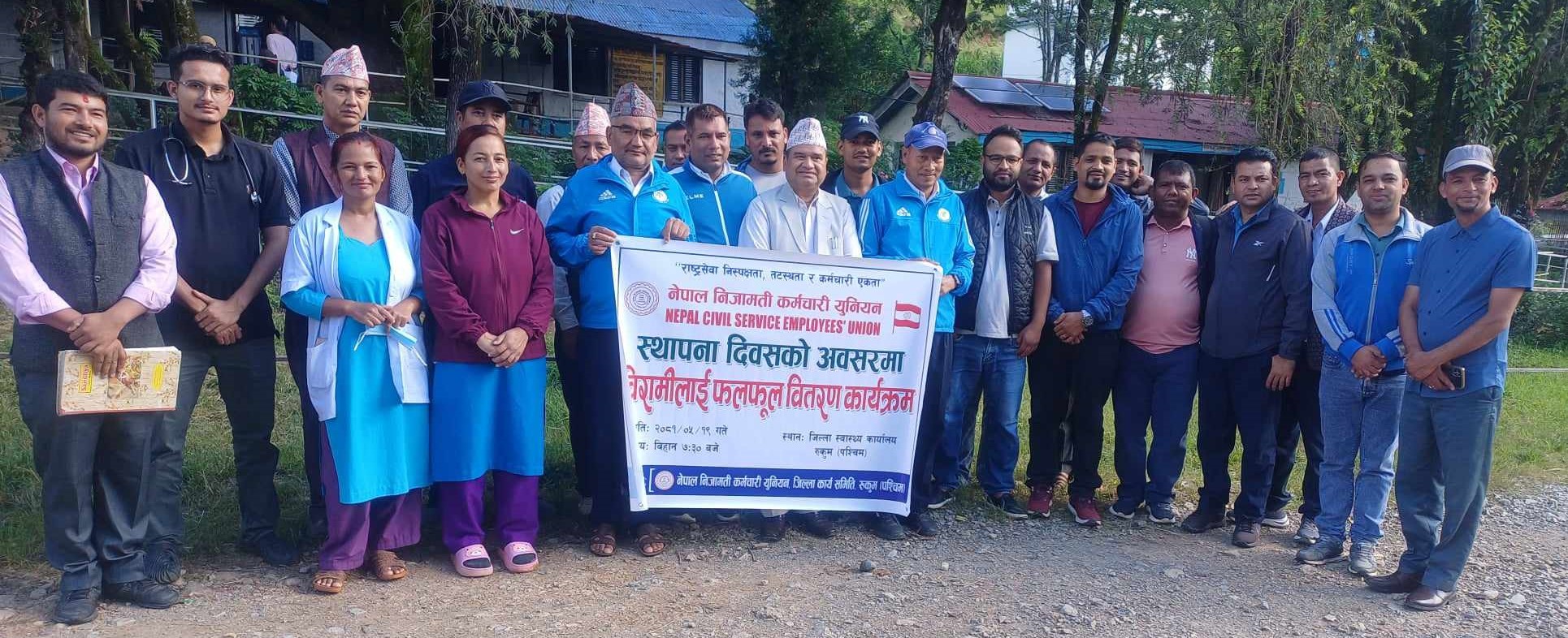 नेपाल निजामती कर्मचारी युनियन रुकुम पश्चिमका अध्यक्ष देव बहादुर ओलीका अनुसार अस्पतालमा उपचाररत ३६ जना बिरामीलाई फलफूल वितरण गरिएको हो ।