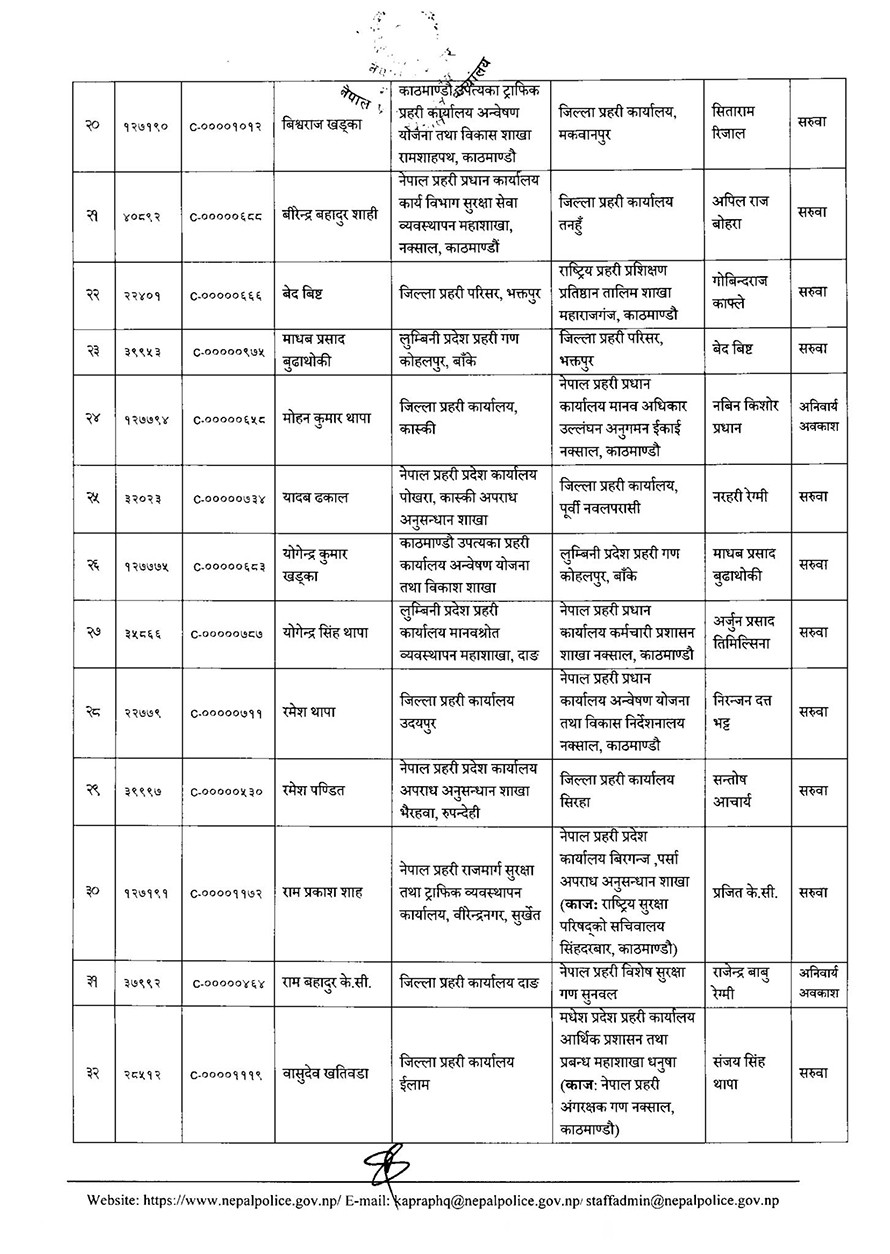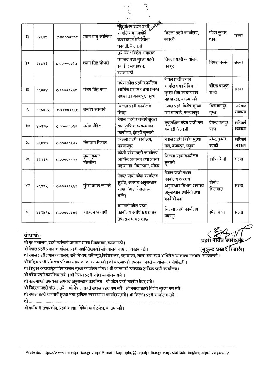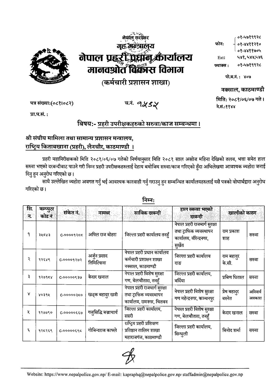 काठमाडौं । नेपाल प्रहरीले ४१ जना प्रहरी उपरीक्षकको सरुवा गरेको छ ।