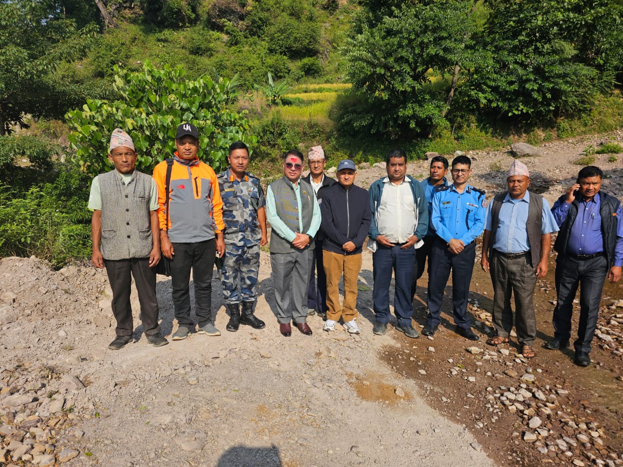 अनुगमन टोलीमा प्रदेश सभा सदस्य केसी सहित जिल्ला समन्वय समिति उप–प्रमुख मोहन केसी, प्रमुख जिल्ला अधिकारी रुद्र प्रसाद न्यौपाने, जिल्ला समन्वय अधिकारी रविन्द्र बुढा, प्रहरी नायव उपरिक्षक माधव खरेल, सिस्ने गाउँपालिका वडा नम्बर ३ का अध्यक्ष हेराम खड्का, वडा नम्बर ७ का अध्यक्ष ससिधर बुढा लगायतको सहभागिता रहेको थियो ।