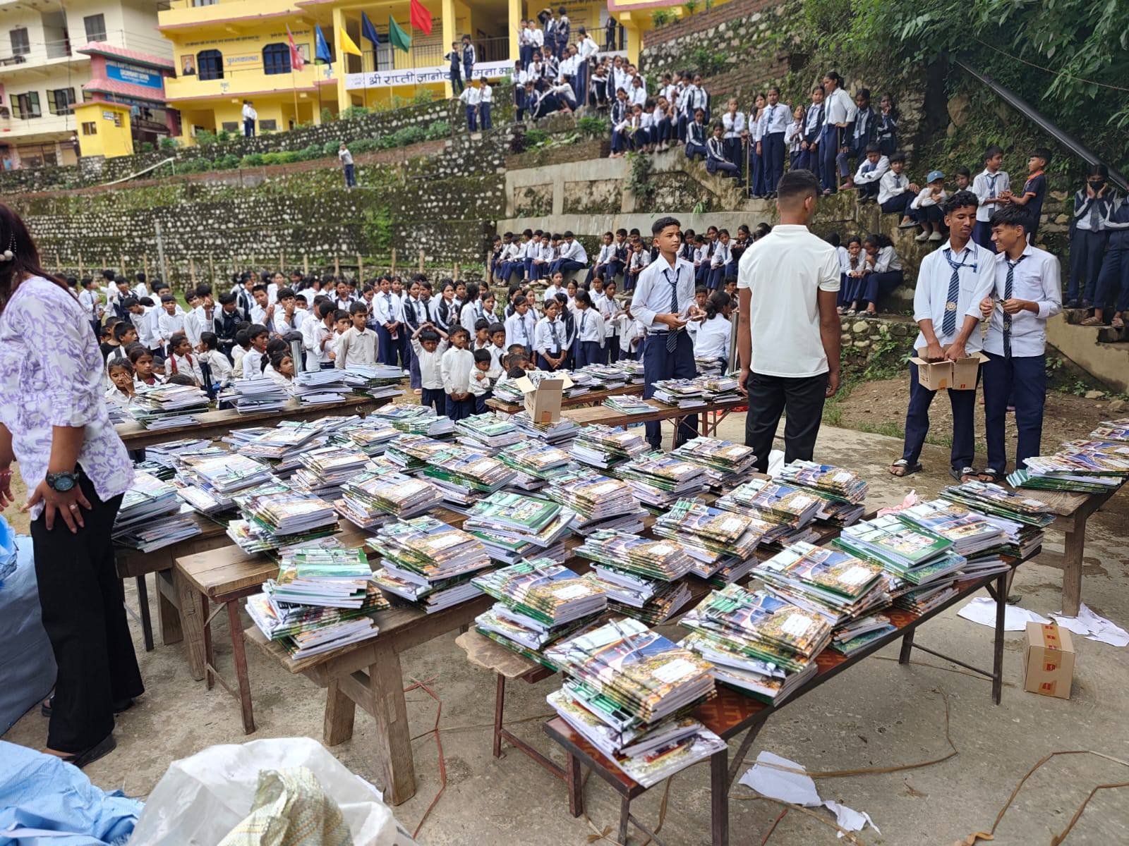 सानीभेरी गाउँपालिकाभित्र रहेका ११ वटा सामुदायिक विद्यालयहरूमध्ये पहिलो दिन जनप्रिय मावि हासिबाङ, ज्ञानोदय नमूना मावि सिम्ली र जनज्योती माविमा शैक्षिक सामग्री वितरण गरिएको हो। बाँकी ८ विद्यालयमा पनि क्रमशः वितरण गरिने समाजसेवी केसीले जानकारी दिनुभयो।