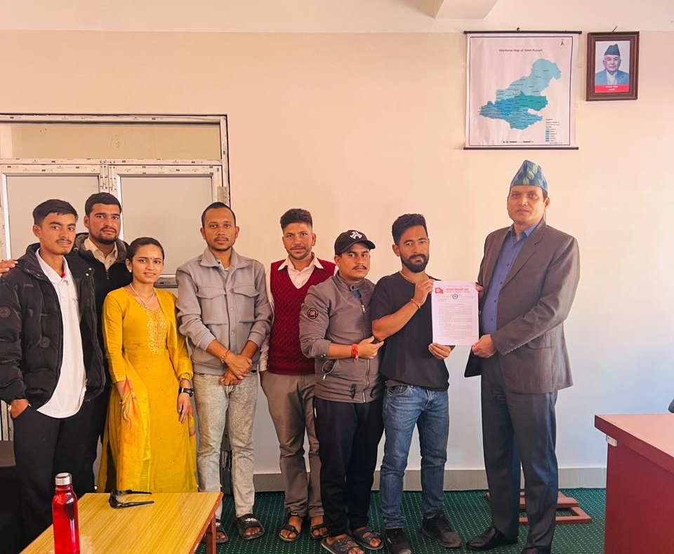 मुसिकाेट । नेपाल विद्यार्थी संघ (नेविसंघ) केन्द्रीय कार्यसमितिको परिपत्रअनुसार सम्पूर्ण जिल्लामा एकसाथ सुरु गरिएको “भ्रष्टाचार, दण्डहीनता र कुशासन अन्त्यका लागि ऐक्यबद्ध अभियान” अन्तर्गत रुकुम पश्चिममा पनि प्रमुख जिल्ला अधिकारी दिनेश प्रसाद थानी मार्फत प्रधानमन्त्रीलाई ज्ञापनपत्र बुझाइएको छ।