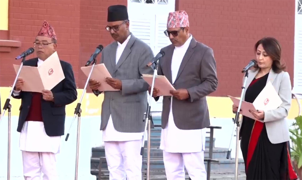 काठमाडौं । प्रधानमन्त्री सुशीला कार्की नेतृत्वको अन्तरिम मन्त्रिपरिषद् विस्तार गरिएको छ । थपिएका चार नयाँ मन्त्रीले शुक्रबार (मंसिर २६) राष्ट्रपति रामचन्द्र पौडेलसमक्ष पद तथा गोपनीयताको शपथ लिएका हुन् ।