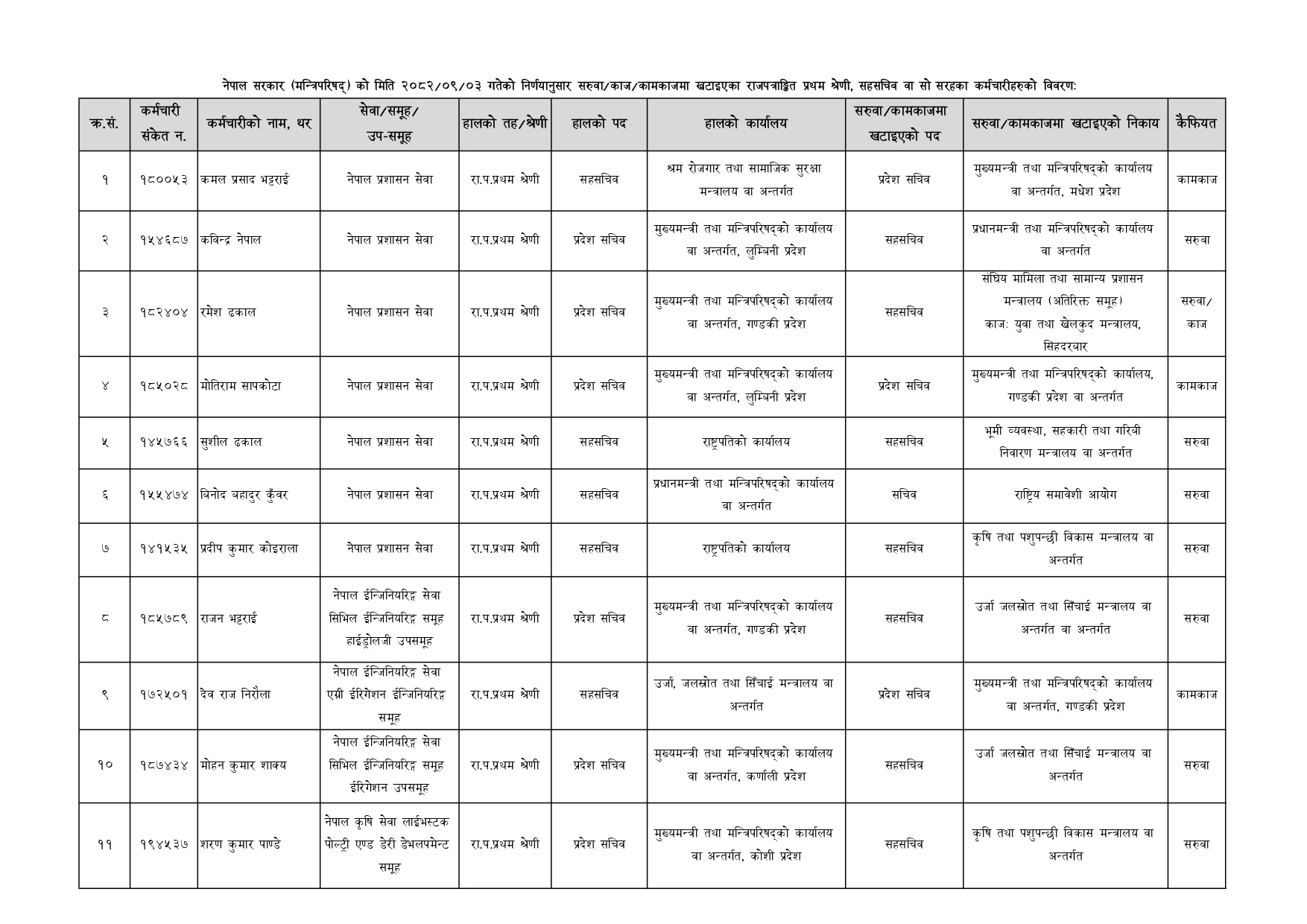 बिहीबार बसेको मन्त्रिपरिषद् बैठकले ६० जना सहसचिवको सरुवा गरेको हो ।