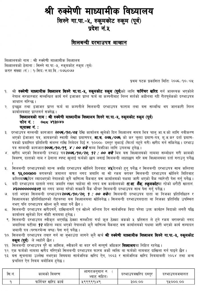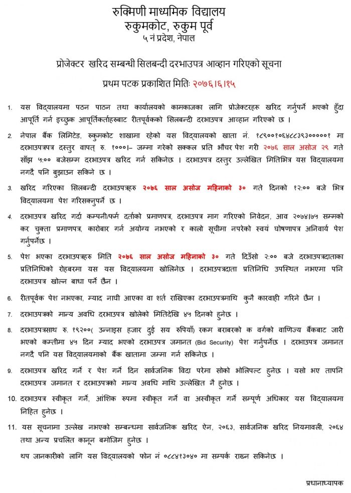 रुक्मेणी माध्यामीक विध्यालयको बाल उद्यान सामाग्री खरिद सम्बन्धी सिलबन्दी दरभाउपत्र आव्हान उजेली न्यूज प्रकाशित मिति : १५ आश्विन २०७६, बुधबार १३:२८ उजेली न्यूज हरेकपल ताजा समाचार