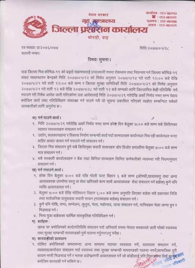 हेर्नुहोस जिल्ला प्रशासन कार्यालयले जारी गरेको सूचना