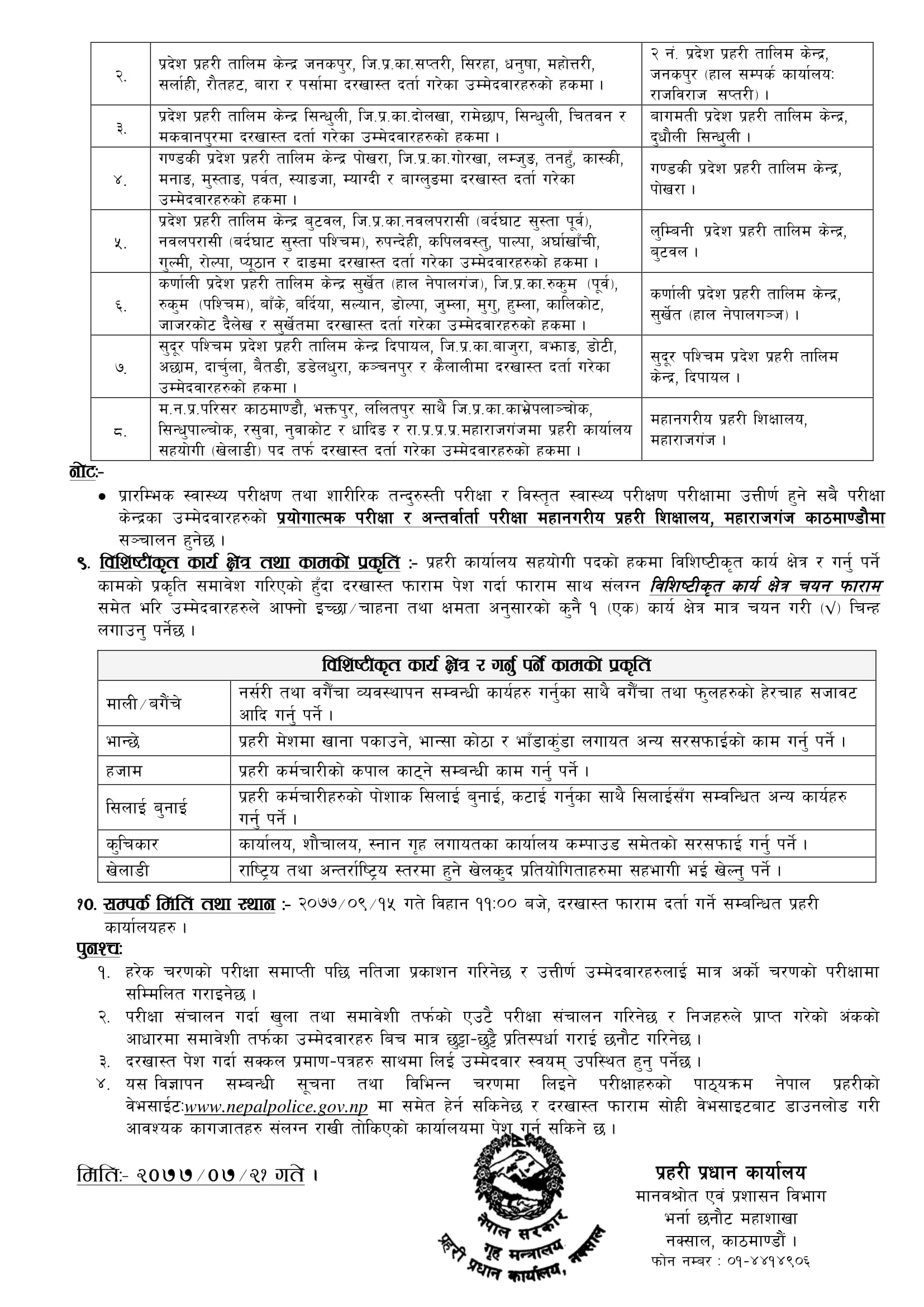 काठमाडौँ । नेपाल प्रहरीले ‘प्रहरी कार्यालय सहयोगी’मा ठुलो संख्यामा जागिर खुलाएको छ। विभिन्न पदमा गरी तीन सय ६० जनाका लागि शुक्रबार प्रहरी प्रधान कार्यालय अन्तर्गत मानवश्रोत एवं प्रशासन विभाग, भर्ना छनौट महाशाखाले सूचना निकालेर दरखास्त आह्वान गरेको हो।